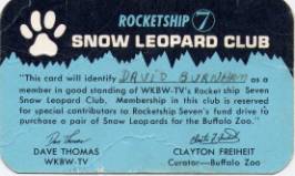 The Snow Leopards The Buffalo Zoo along with WKBW sponsored the importation of a couple of snow leopards. One could become a member of the Snow Leopard Club for a dollar. The coloring in of a paw print on a tote board marked your little donation.